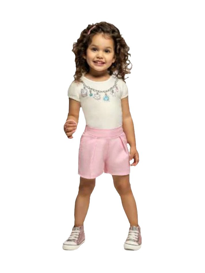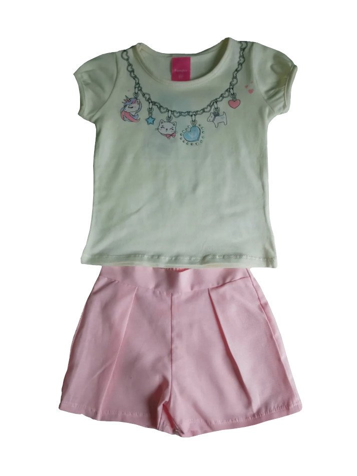 Conjunto menina blusa manga curta cotton e short tricoline Kamylus.